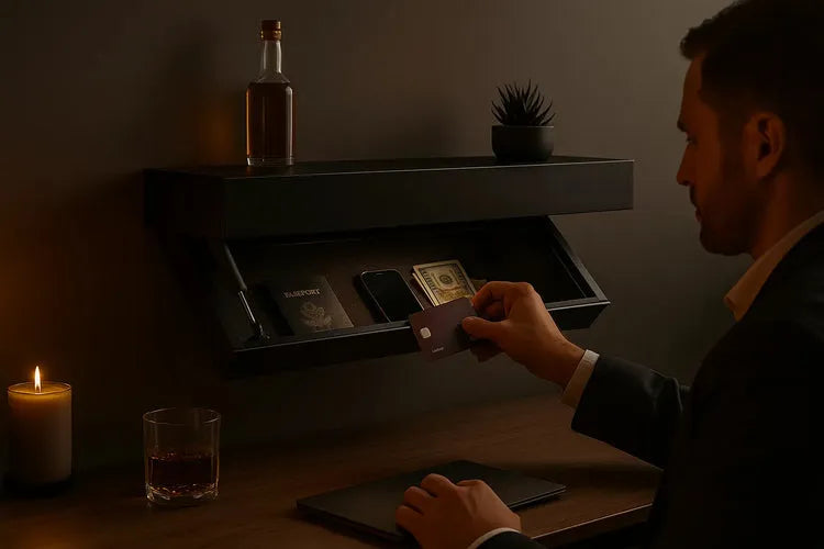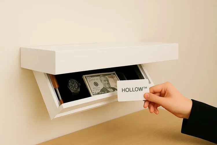 A diferencia de una caja fuerte o una repisa tradicional, HOLLOW™ Shelf se integra a tu espacio de forma invisible, pero funcional. Fabricada con materiales resistentes y acabados premium, cuenta con una apertura que se activa al acercar una tarjeta específica, brindando control total solo a ti.