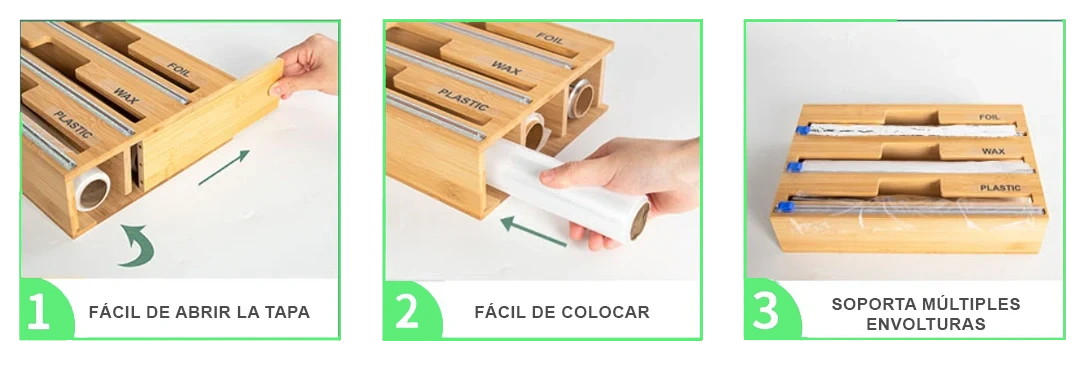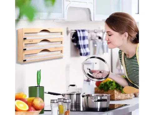 Olvídate del desorden en tus cajones y encimeras. Con nuestro Dispensador 3 en 1, tendrás a la mano papel aluminio, vinipel,papel mantequilla u otro papel que uses en tu cocina de forma fácil y organizada. Su diseño elegante y funcional lo hace ideal para cualquier cocina.