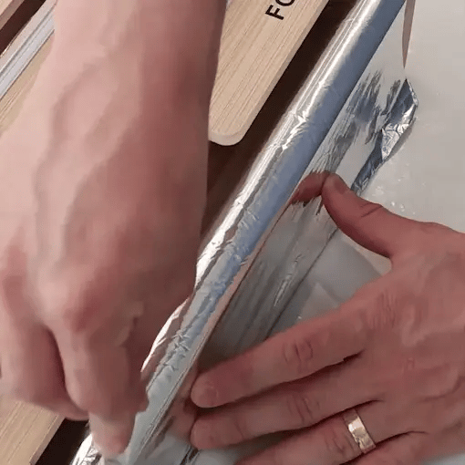 Abra la tapa superior y ubique el papel aluminio, el papel mantequilla y el vinipel en sus espacios correspondientes. Asegúrese de que cada rollo esté bien ajustado para un fluido gradual.