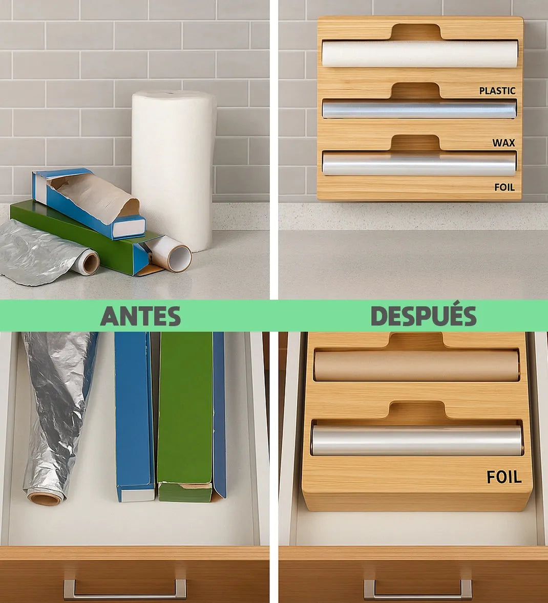 ¡Organiza tu cocina y olvídate del desorden de rollos!Corta fácil, rápido
