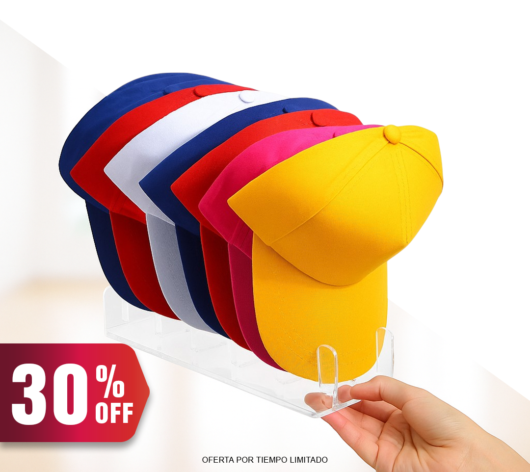 Descubrí una forma elegante y funcional de mantener tus gorras organizadas y a la vista. Este organizador en acetato transparente no solo ahorra espacio, también realza tu colección con brillo y estilo. Ideal para closets, repisas o mesas.
