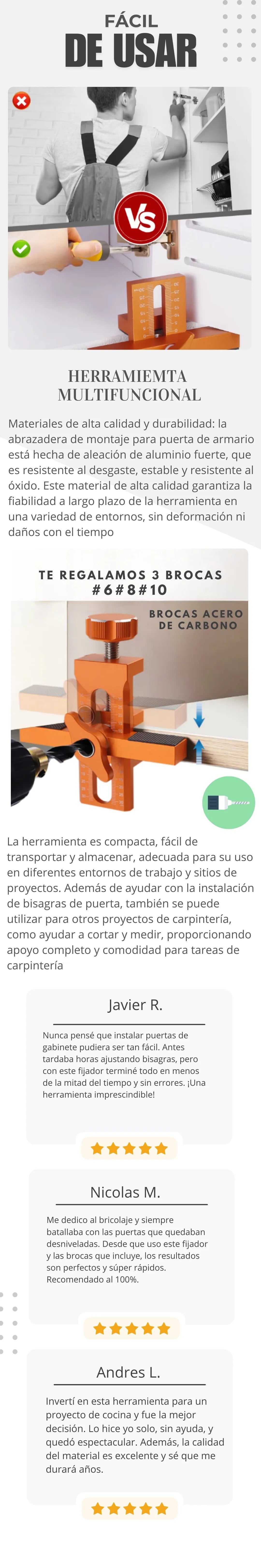 No. Nuestro fijador está diseñado como una solución integral. Además, incluye 3 brocas de acero de carbono para que puedas perforar de inmediato sin necesidad de comprar accesorios extra.