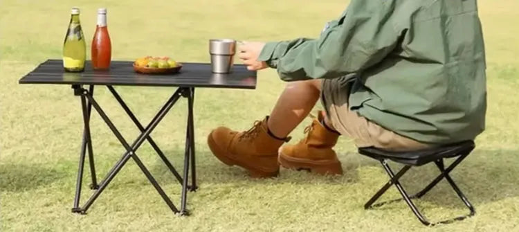 Este banco no solo es práctico, también es elegante y minimalista. Su color negro neutro combina con todo, mientras su estructura metálica asegura estabilidad en cualquier terreno. Ya sea que lo uses para descansar al aire libre o como asiento adicional en tu hogar.