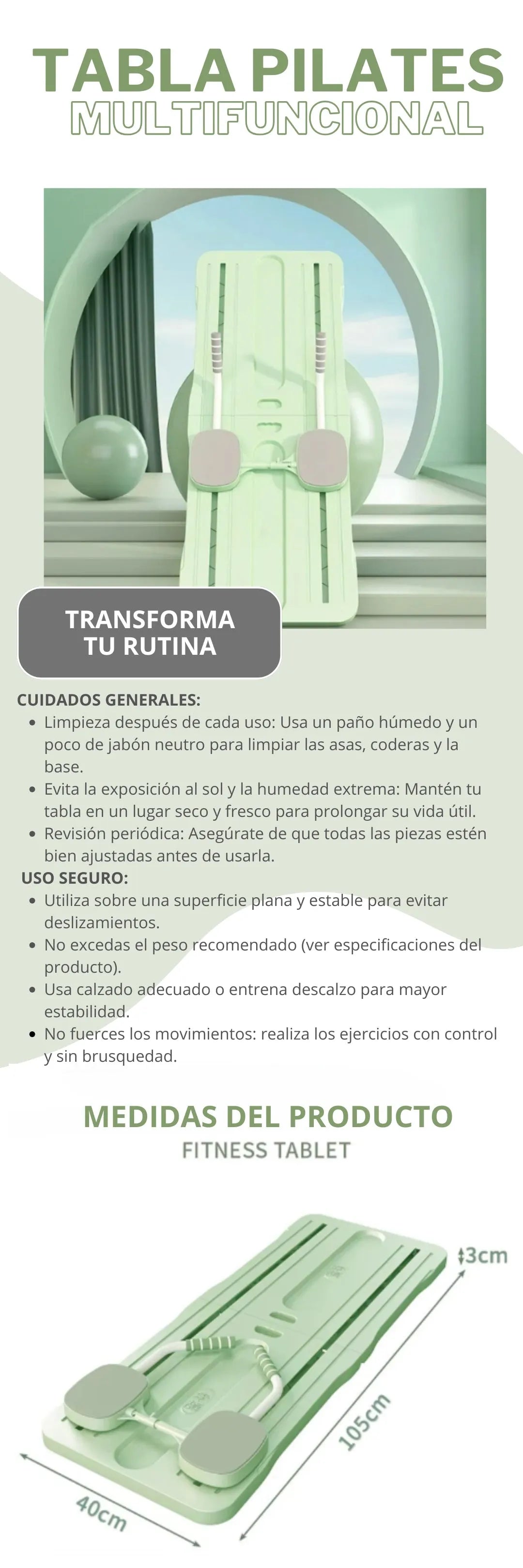 ¿Cansado de rutinas monótonas y sin resultados? Con la Tabla Pilates Multifuncional puedes realizar una variedad de ejercicios de fuerza, resistencia y tonificación. Diseñada con un sistema de rebote automático y mangos ajustables, se adapta a cualquier nivel de entrenamiento.
