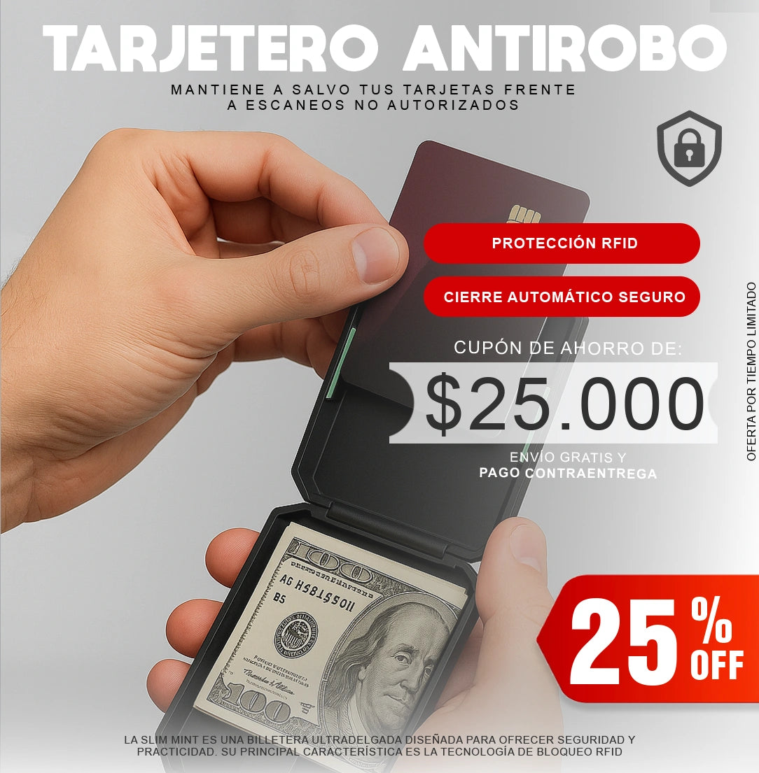 Ya no necesitas llevar una billetera gruesa y pesada. La Slim Mint es minimalista, elegante y práctica. Fabricada en aluminio de alta resistencia, no solo protege tu información, también cuida tu estilo. Ideal para hombres y mujeres que buscan funcionalidad con diseño moderno.