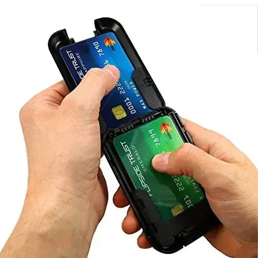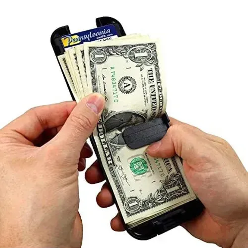 Evita caídas accidentales de billetes y tarjetas.